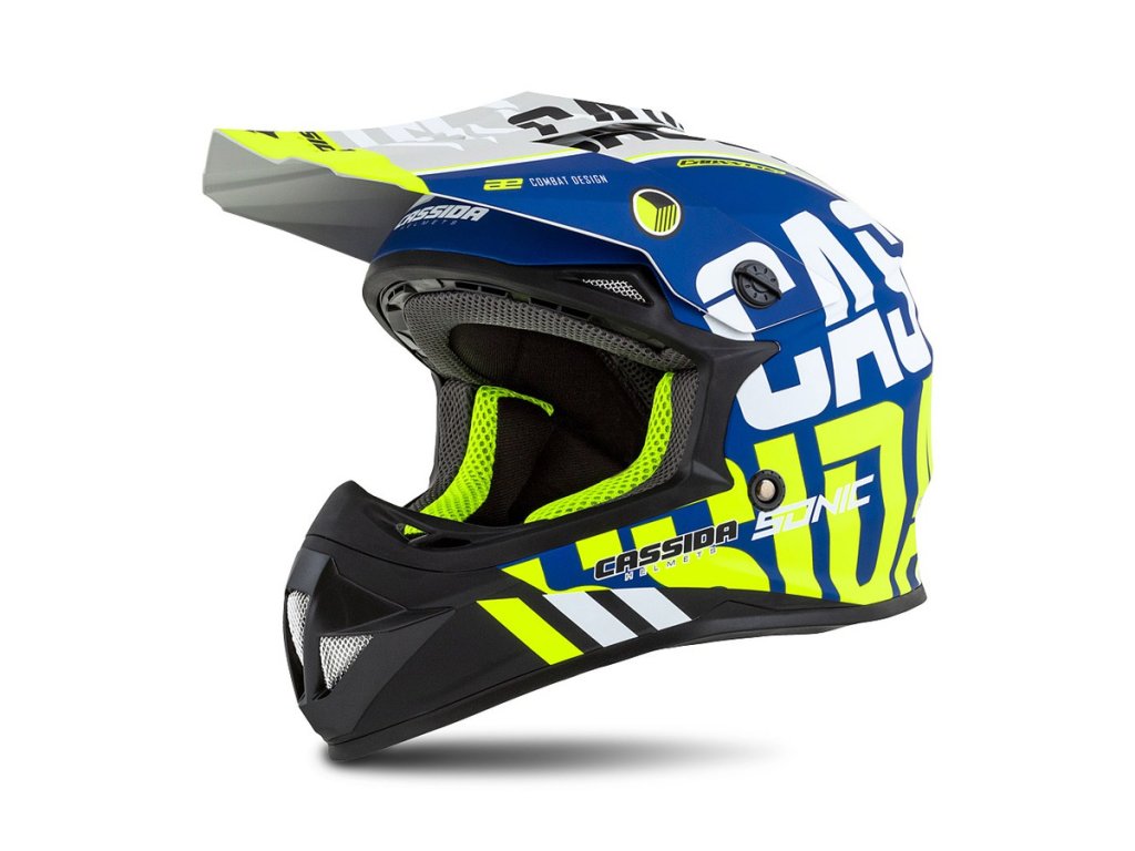 Cassida CROSS CUP SONIC JUNIOR MODRÁ MATNÁ/ŽLUTÁ FLUO krosová helma, velikost SDoplňkové parametry