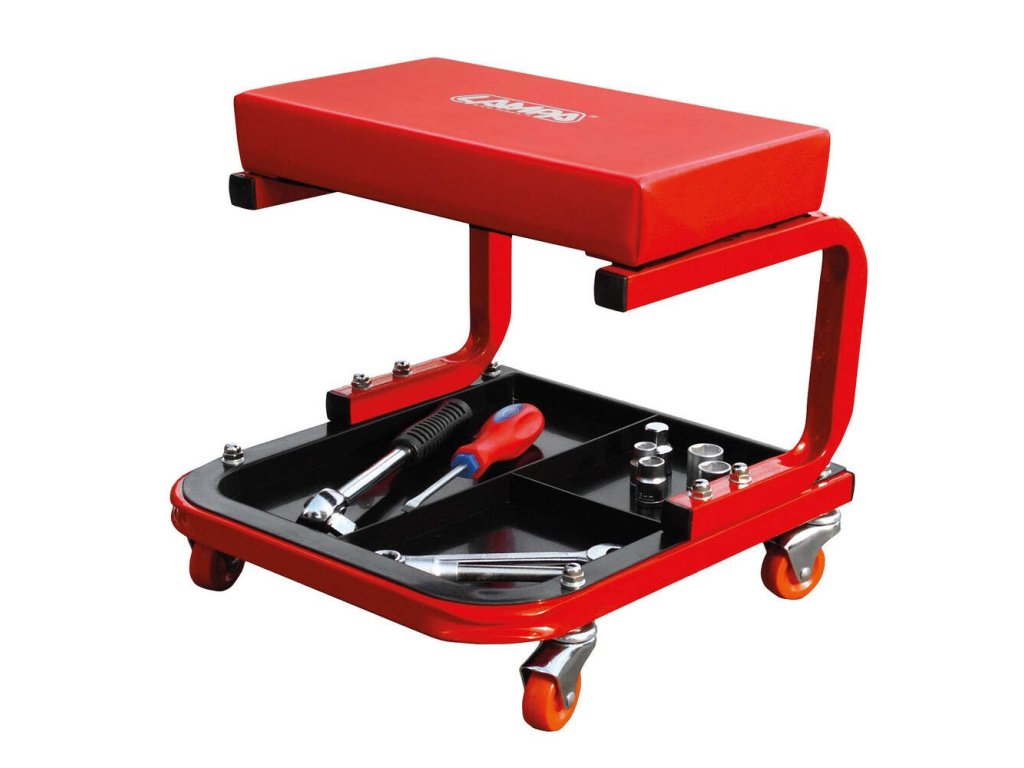 Dílenská stolička na kolečách s odkládacím místem na nářadí