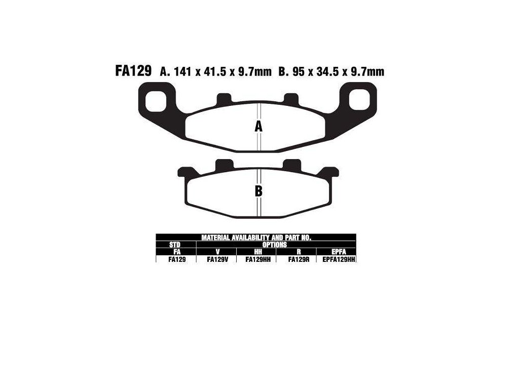 EBC FA129 organické brzdové destičky pro motorkuDoplňkové parametry