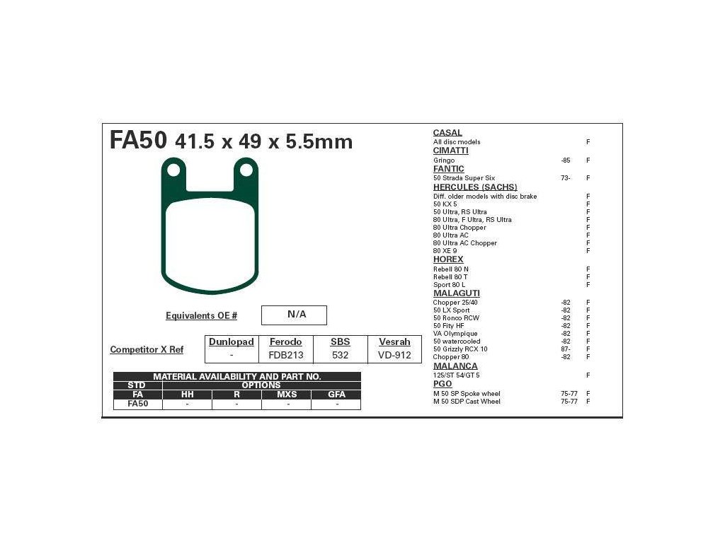 EBC FA50 organické brzdové destičky pro motorkuDoplňkové parametry