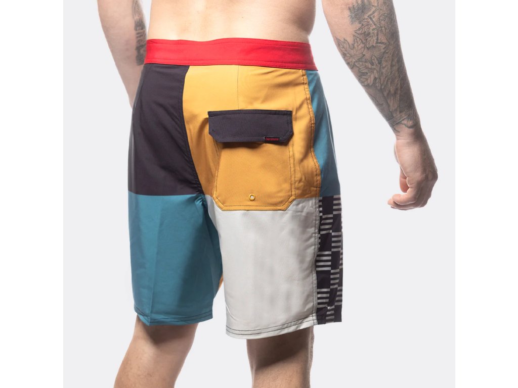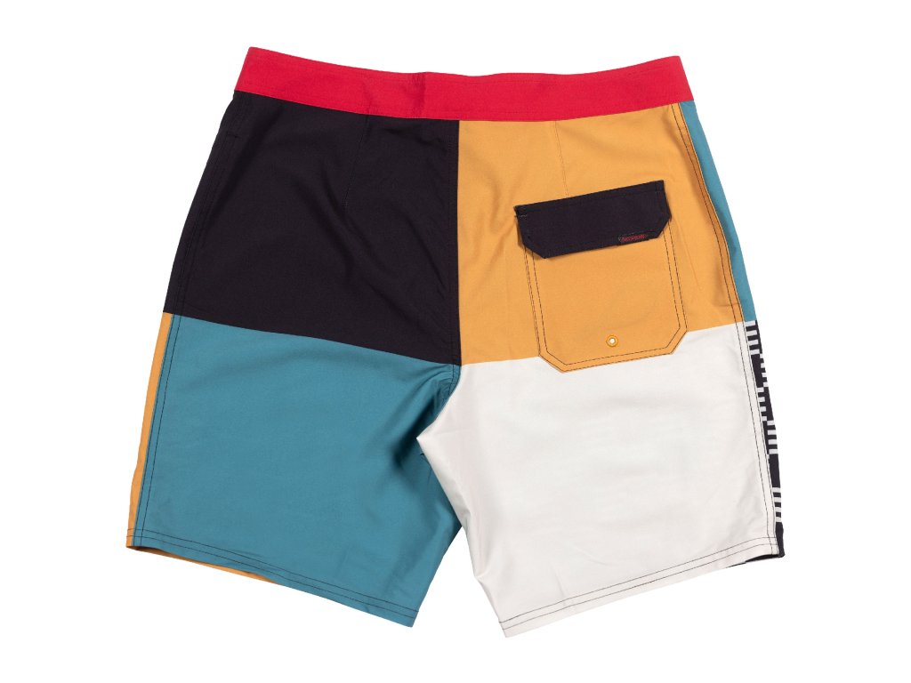 Stylové letní plážové šortky After Hours 18" Boardshort mají svým vzhledem nádech retro Jižní Kalifornie. Ideální na pláž, do bazénu i na výlet. Mix klasického surf-tech vzhledu a lifestylového střihu. Dvě kapsy jsou po stranách a další je zezadu šortek. Zapínání na suchý zip a tkanici. Délka nad kolena.