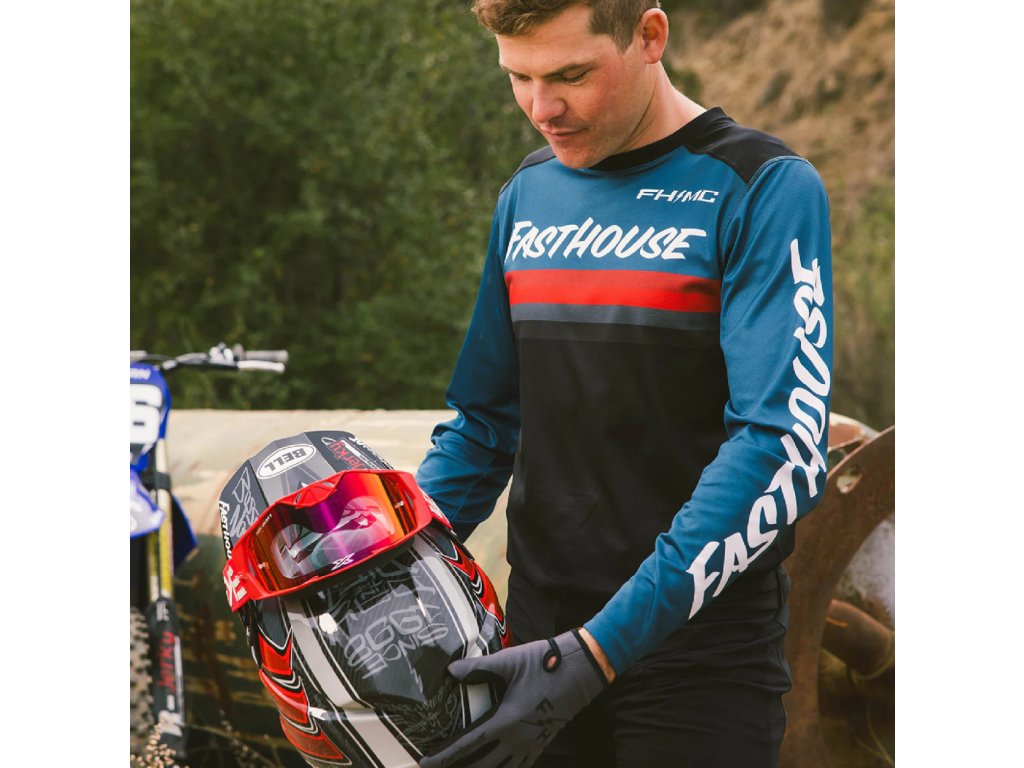 Motokrosový dres Fasthouse Carbon Method Jersey je určený pro jízdu na motokrosových, endurových či trialových motocyklech, případně lze použít i pro MTB, bikros a downhill. Velikost zvolte podle obvodu hrudníku jezdce kolem navléknutých chráničů hrudi, zad a podobně.