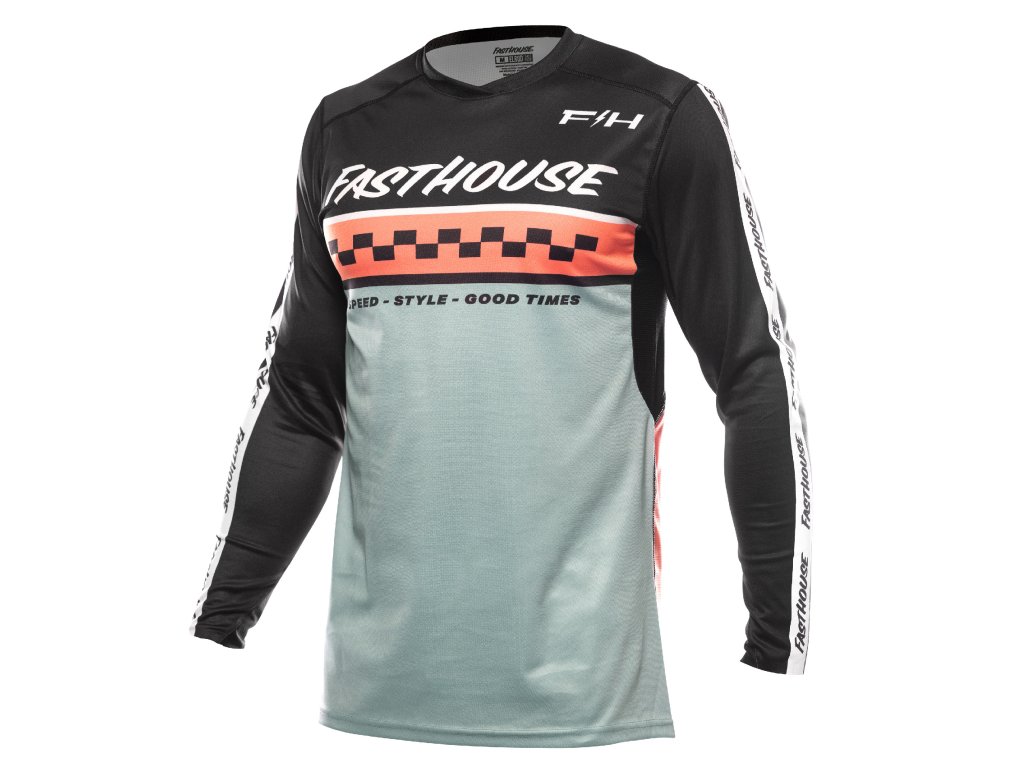 Motokrosový dres Fasthouse Elrod Formula Jersey je určený pro jízdu na motokrosových, endurových či trialových motocyklech, případně lze použít i pro MTB, bikros a downhill. Velikost zvolte podle obvodu hrudníku jezdce kolem navléknutých chráničů hrudi, zad a podobně. Série Elrod je to nejlepší, co tato značka nabízí, ve slim-fit závodním provedení, navíc s extra prodyšnými látkovými panely na zádech a při vnitřní straně rukávů. Oceníte ji jak na závodech v letních měsících, tak i během tréninků, pokud jste zvyklí na luxus a jízdní komfort bez kompromisů.