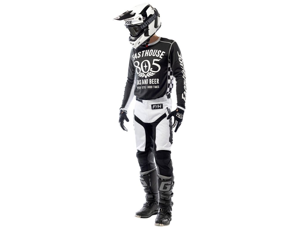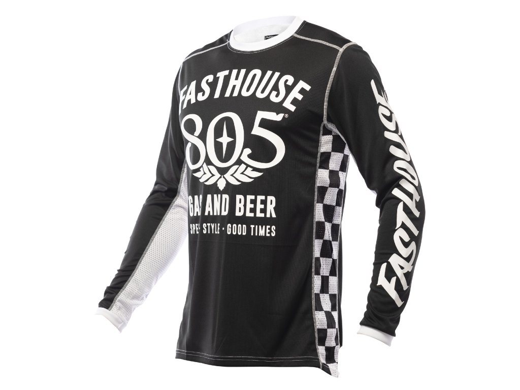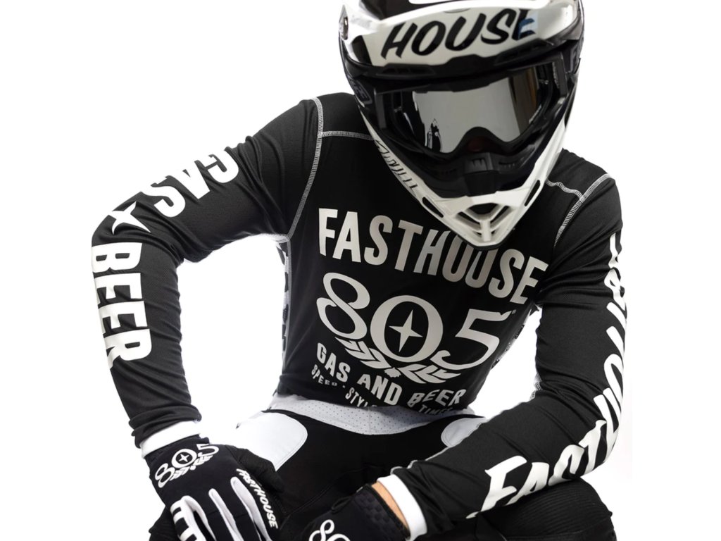 Motokrosový dres Fasthouse Grindhouse 805 Jersey svým designem vzešel z kooperace značky Fasthouse a výrobce piva Firestone Walker Brewing Company pod značkou 805 Beer. Dres je určený pro jízdu na motokrosových, endurových či trialových motocyklech, případně lze použít i pro MTB a downhill. Velikost zvolte podle obvodu hrudníku jezdce kolem navléknutých chráničů hrudi, zad a podobně. Klíčové vlastnosti zahrnují: vlhkost odvádějící FastDRI materiál, síťované látkové panely na bocích a zevnitř rukávů pro ještě lepší prodyšnost, žebrovaný okraj kolem krku a zápěstí, rukáv s možností zahnutí v dolní části u zápěstí, potisk sítotiskem, pevné overlock švy, prodloužená zadní část dresu v jeho dolní části. Dresy, kalhoty i rukavice z různých sérií mezi sebou můžete libovolně kombinovat do jednoho kompletu, pouze barevnost by měla být sladěna.
