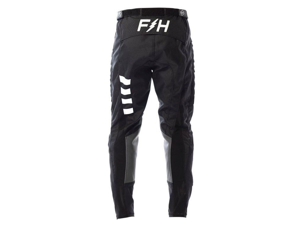 Kalhoty Fasthouse Grindhouse Pant jsou určené pro jízdu na motokrosových, endurových motocyklech či quadech. Velikost zvolte podle obvodu sníženého pasu jezdce. Pokud jezdec používá chrániče (například bederní pás), které zasahují do prostoru pasu a nejsou umístěny nad kalhotami či na kalhotách zvenku, ale přímo mezi tělem a kalhotami, měřte obvod sníženého pasu (obvodu kolem vrcholu kyčelních kostí) s nasazenými chrániči. Série Grindhouse používá kvalitní materiály a tradiční střih, oblečení je konstruováno tak, aby vydrželo mnohé tréninky i obstálo jako závodní funkční oblečení. Klíčové vlastnosti zahrnují: hlavní konstrukce kalhot je tvořena z vysokogramážní 600D látky, spodní konstrukce kalhot je tvořena stretch materiálem s pružností do 4 stran, pevné nylonové nitě spojují jednotlivé panely látek dvojitými či trojitými švy, obsahuje brandová označení aplikované TPR technologií, kolenní panely jsou pružné do dvou stran, pánevní panel je také pružný do dvou stran, vnitřní kolenní panely jsou z pravé nepískované kůže, takže vydrží vyšší či vícečetnou zátěž včetně tepelné, zip je schován a překryt látkou, obvod pasu lze upravit nastavitelným plastovým páskem a postranními suchými zipy, pánevní panel je tvořen vícerými plochami látek pro vyšší či vícečetnou zátěž. Přední panel kalhot je v nejvyšším místě děrovaný pro extra ventilaci, vnitřní lehké síťovaná podšívka je umístěna v kalhotách do 3/4 jejich délky, čímž optimalizuje možný pohyb jezdce v ortézách, které nemají tak velkou šanci zadrhnout se o vnitřní švy kalhot, pokud by byly nepřekryté.