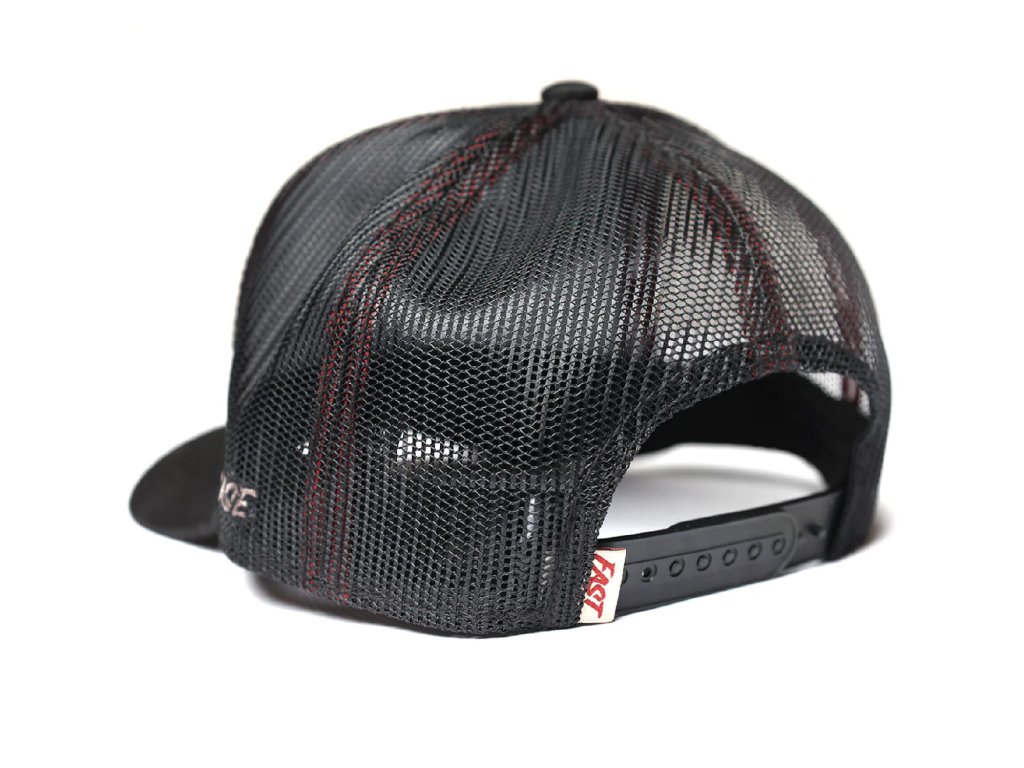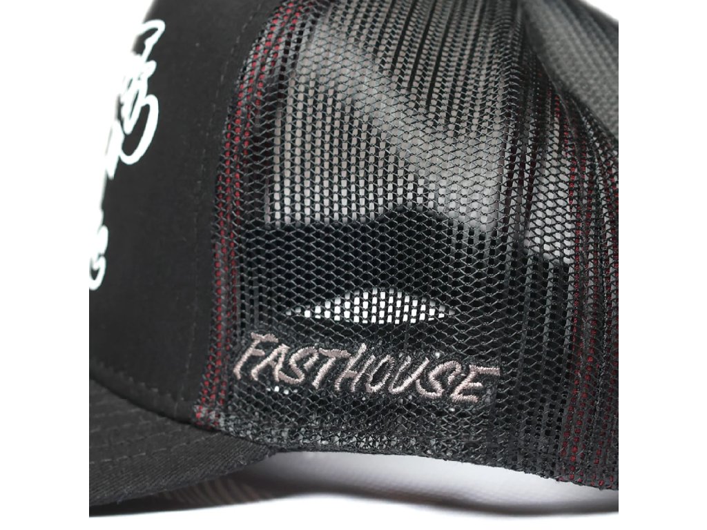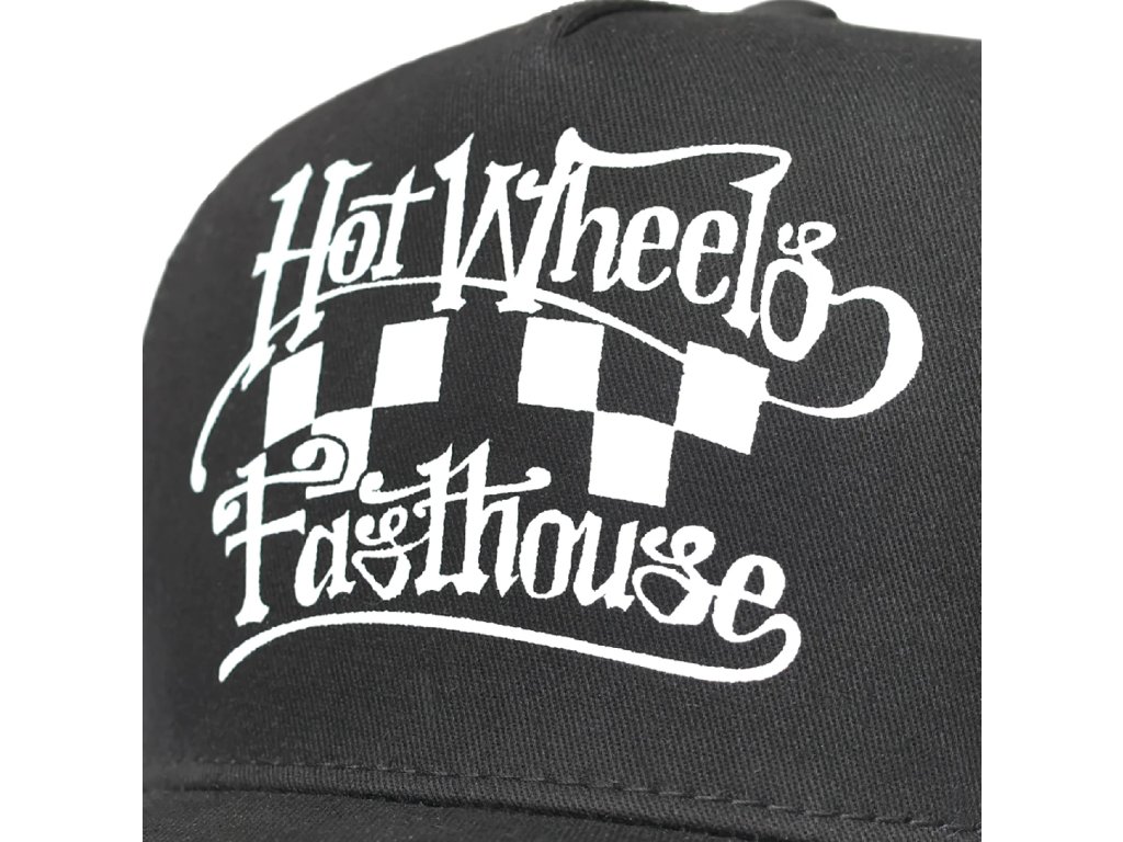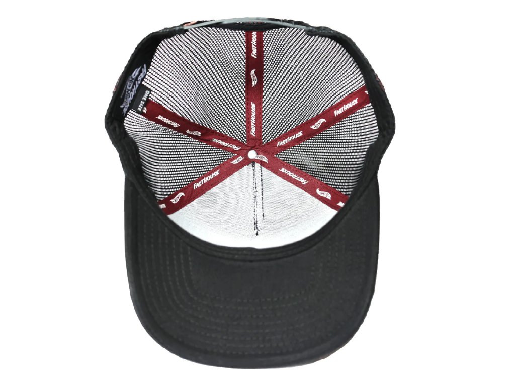 Fasthouse Hot Wheels Striper Trucker Hat Black, má universální velikost One Size, zaoblený pevný kšilt. Zezadu čepice je plastový pásek s nastavitelnou délkou, měníte tak obvod čepice.