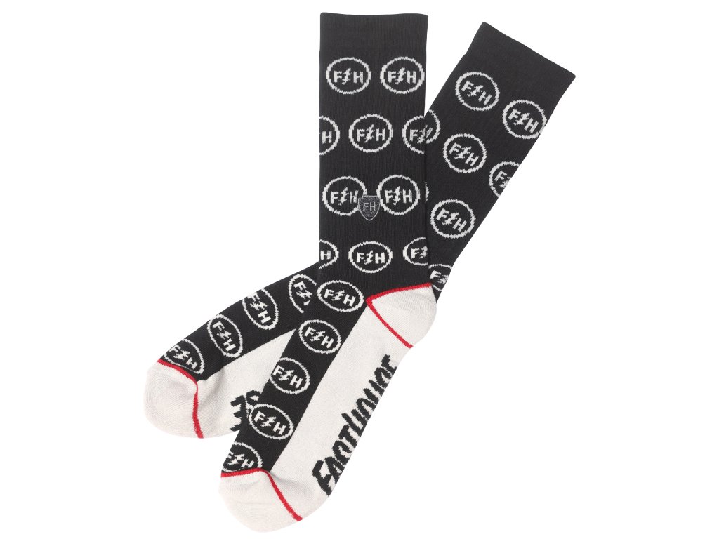 Fasthouse Icon Sock. Pohodlné pletené vyší stylové ponožky z příjemného středně gramážního materiálu. Ponožky jsou pružné, výškově zasahují až do poloviny lýtek, podle natažení a velikosti nohou, dají se také přehnout a nosit něco málo nad kotníky. Velké logo je na spodní straně chodidel, další malé logo je umístěno na tkané nášivce. Ideální pro podzimní, zimní a jarní období.