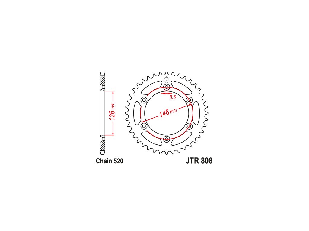 Alternativní typ: JTA808 (Aluminium Rear Race Sprocket)