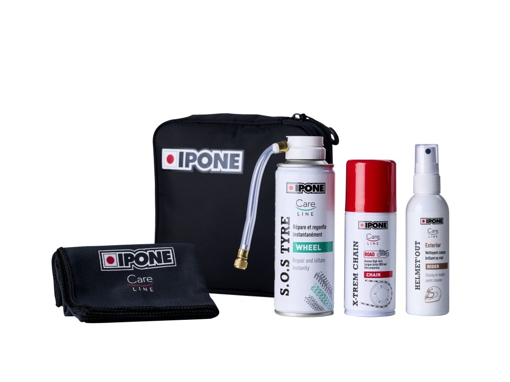 Ipone road trip kit cestovní set mazání řetězu, oprava defektu pneu a čistič hledí 500ml