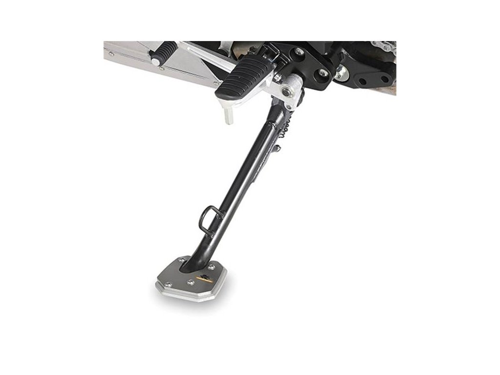 Hliníkové rozšíření bočního stojanu. Plocha stojanu je pak větší a stojan se tak nepropadá do měkkého podkladu.