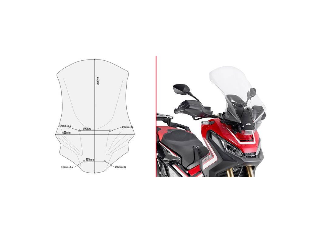 HONDA X ADV 750 (17-20) - montuje se místo originálního plexi / pro zajištění úplné rotace řídítek nelze čelní plexi nastavit na nejnižší ani nejvyšší nastavení. Lze ji nastavit pouze na tři střední nastavení / 13 cm vyšší než originál