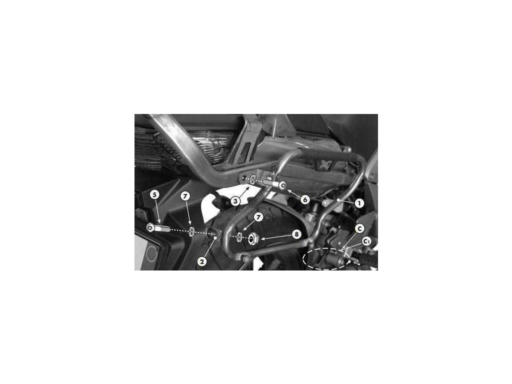 Trubkový nosič bočních kufrů, na pevno. Tento trubkový nosič NELZE snadno a rychle demontovat z motocyklu, zůstává na motorce. Určen jen pro kufry V35N, V35NT, K33N. Pětibodové uchycení kufrů k nosiči.