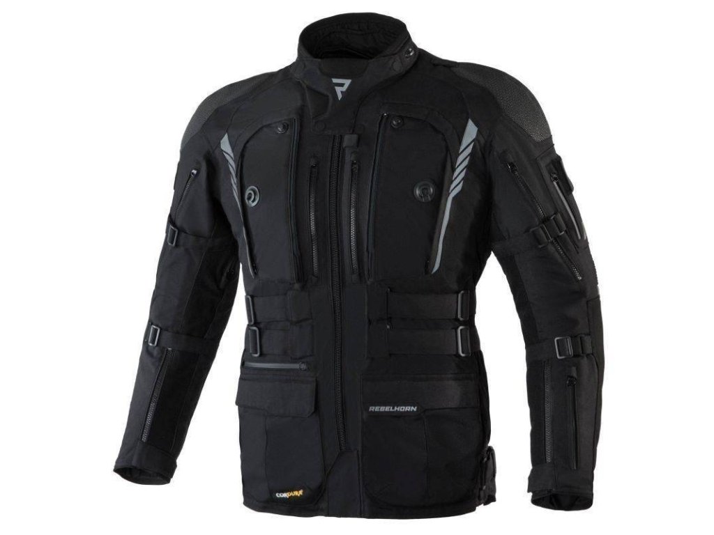 Moto bunda Rebelhorn Patrol, černá textilní cestovní bunda, velikost XS