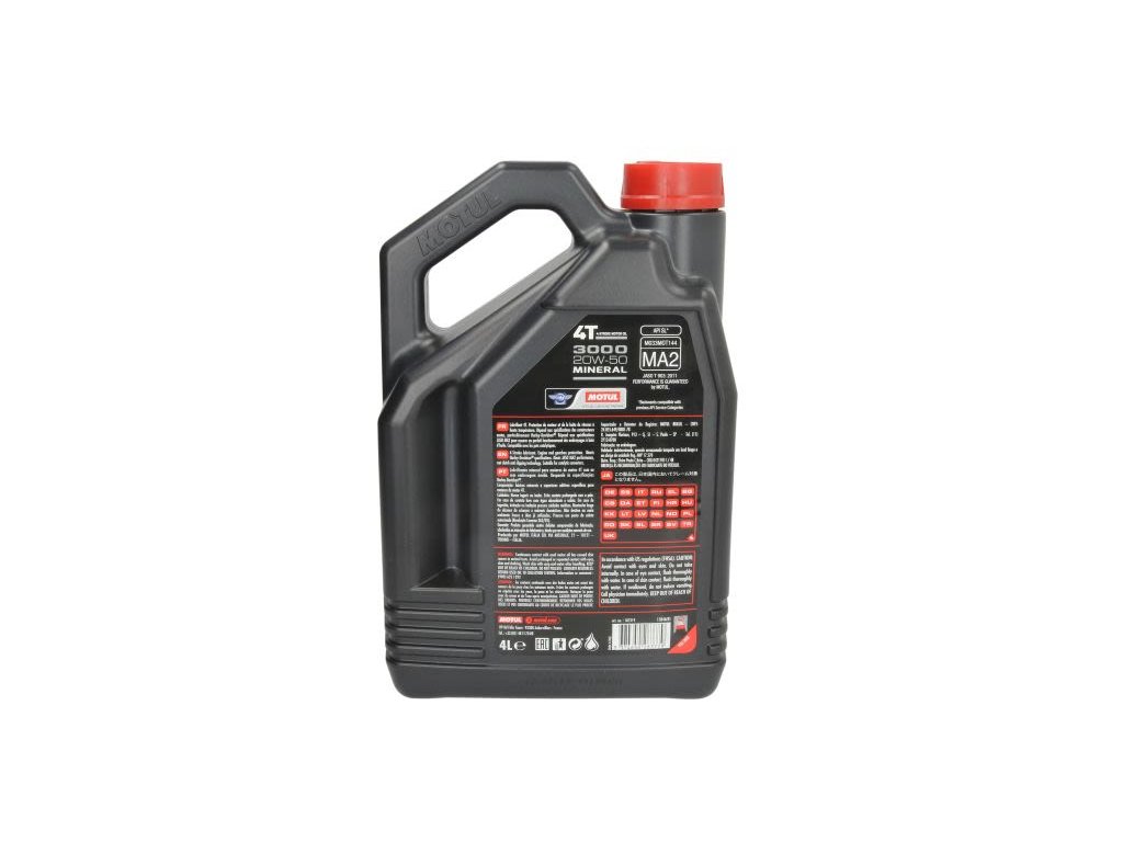 Olej pro 4-taktní motocyklové motory na minerální bázi speciálně obohacený vysokotlakými aditivy pro ochranu a zvýšení životnosti převodů. Špičkové mazací schopnosti snižují opotřebení motoru a zvyšují jeho životnost. Díky vysoké čistící a disperzní schopnosti zůstává motor čistý. Kompatibilní s katalyzátory. Viskozitní stupeň kompenzuje ředění paliva olejem, snižuje spotřebu oleje a umožňuje hladké řazení. Vhodný olej také pro starší typy velkoobjemových motorů a motorů s kombinovaným chlazením (air-oil).