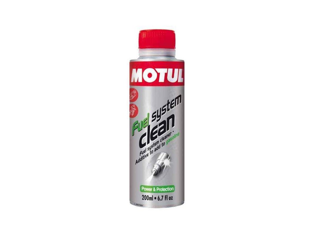 MOTUL Fuel System Clean je možné použít ve všech 4-taktních motocyklech, čistí celý palivový systém. Znečištění způsobená provozem, např.: usazeniny ve spalovací komoře a na ventilech, lepení vstřikovacích trysek, odstraní kondenzaci v palivovém systému. Vysoce účinné mazací složky chrání palivový systém během procesu čištění a zabrání uložení uvolněných částic.Čistý palivový systém je předpokladem pro čisté a efektivní spalování. Při pravidelném používání Motul Fuel System Clean dosáhnete bez další práce vylepšení výkonu motoru, úspory paliva, delší životnosti celého palivového systému a katalyzátoru a také zlepšíte emise. Stabilizuje palivo, doporučeno pro dokonalou ochranu palivového systému během zimního skladování.