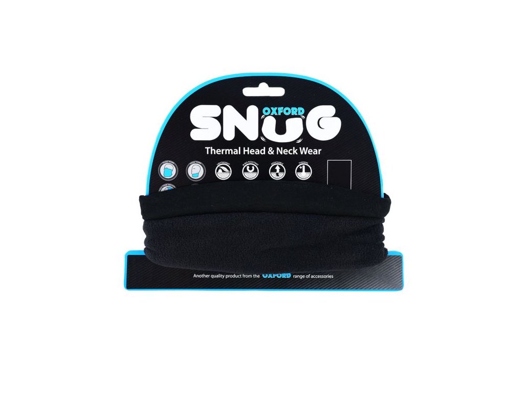 Oxford Snug Black multifunkční šátek s fleecem, černý univerzální velikost