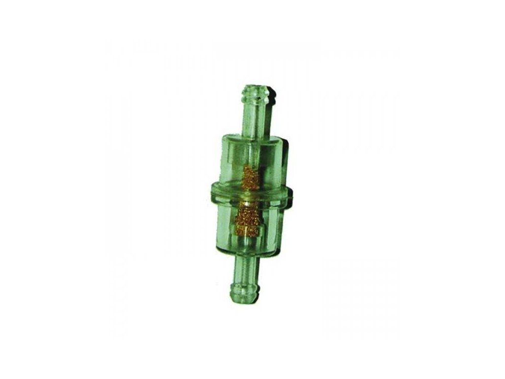 Detailní popis Palivový filtr 8mm (5/16''), O=60mm, délka 60mmbenzínový filtr 5/16" 8mm, O=21mm, (kovové sítko), kulatý, průhledný, celková délka: 60mm
