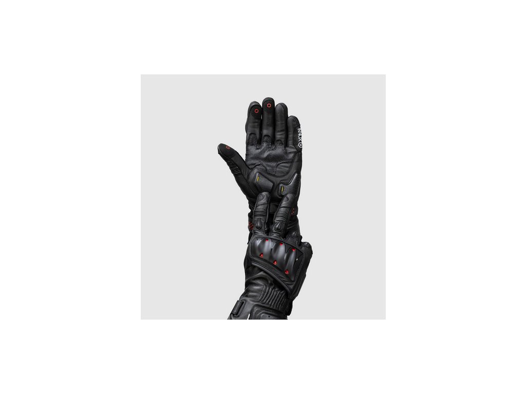 Pánské kožené rukavice Oulton Mk2 mají certifikát CE EN13594 a jsou k dispozici v černé s bílou nebo černé s červenou. Je k dispozici v pěti velikostech od S – 3XL.
