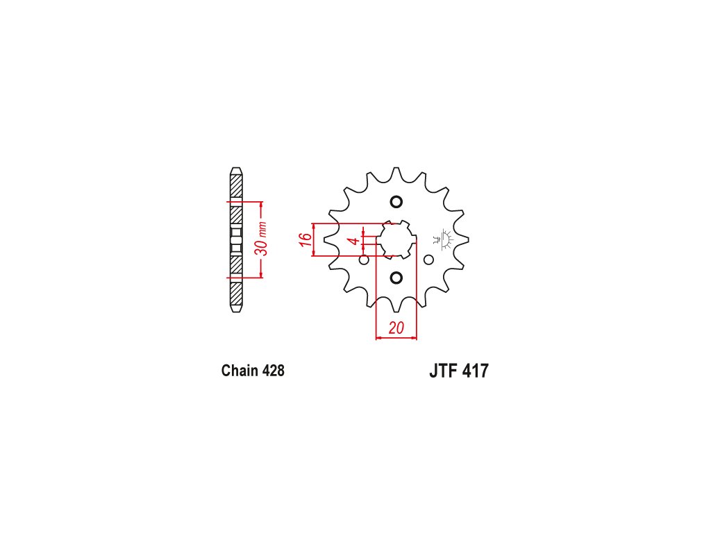 JT JTF417.17 Přední kolečko (pastorek), 17 zubů, 428 řetěz, JTF417 (Steel Front Sprocket), dostupné alternativy zubů: 13, 14, 15, 16, 17, Může nahradit: JTF416, ,