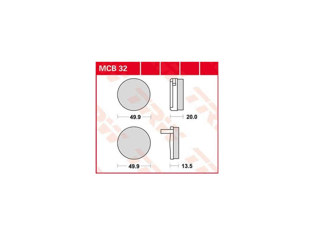 TRW Standard TRW-MCB32 pro přední i zadní brzdu, standartní organické destičky s keramickým podkladem, vysoká životnost, použití na všechny druhy kotoučů, výborný brzdný účinek za mokra i sucha.
