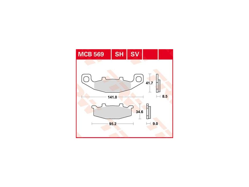 TRW Standard TRW-MCB569 pro přední i zadní brzdu, standartní organické destičky s keramickým podkladem, vysoká životnost, použití na všechny druhy kotoučů, výborný brzdný účinek za mokra i sucha.