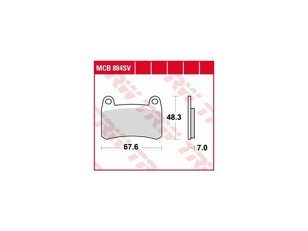 TRW SV Sinter Performance TRW-MCB884SV destičky vhodné pouze pro přední brzdu, plnokovové destičky s antikorozním lakováním, vyšší třecí koeficient, zaručená výkonnost, minimální doba záběhu, destičky lze použít na všechny druhy ocelových kotoučů, velice dobré chování za mokra, vysoká životnost, speciální úprava pro přední brzdu.